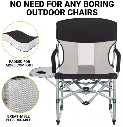 Խորովածի ճամբարային պիկնիկի աթոռ, ծալովի ճամբարային աթոռ, ծանրաբեռնված շարժական ռեժիսորներ մեծահասակների համար կողային սեղանի ցանցով հետադարձ ոճով