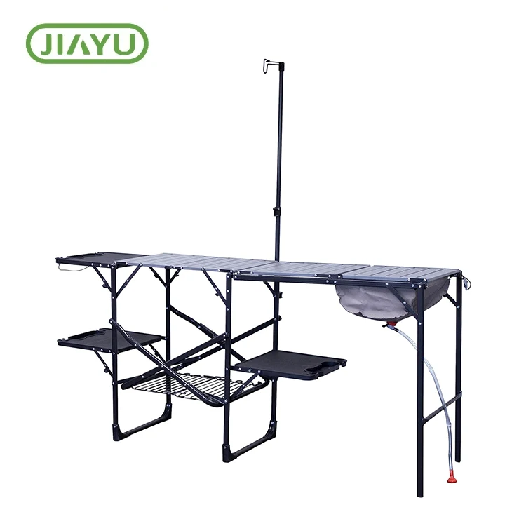 Դյուրակիր ծալովի ալյումինե ճամբարի սեղան, դարձրեք ձեր ճամբարային ուղեւորությունները EPIC- ի GCI- ի բացօթյա վարպետության կայանի հետ: Այս դյուրակիր խոհանոցը փաթեթավորված է առանձնահատկություններով (ներառյալ փափուկ կեղեւի լվացարանը), այն դարձնելով ձեր պոչամբարի կամ ճամբարային անհրաժեշտության կատարյալ լրացում: