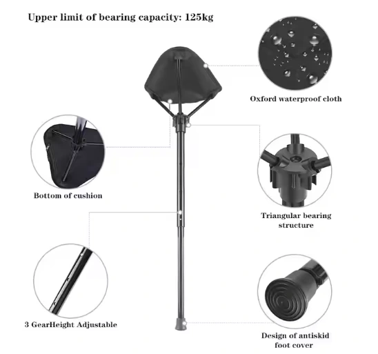 Foldable Travel աթոռը, որն ավարտված է երկակի շերտով օքսֆորդով եռոտանի նստատեղի մակերեսով, ավելի ամուր եւ կայուն, մեծահասակների համար մեծահասակների համար տեղավորվում է մեծ եւ բարձրահասակ մարդուն: