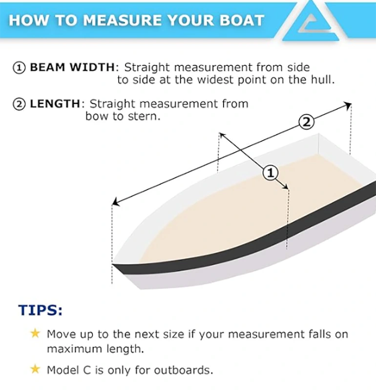 Չափս մոդել C՝ 16'-18,5'L Ճառագայթի լայնությունը մինչև 94''