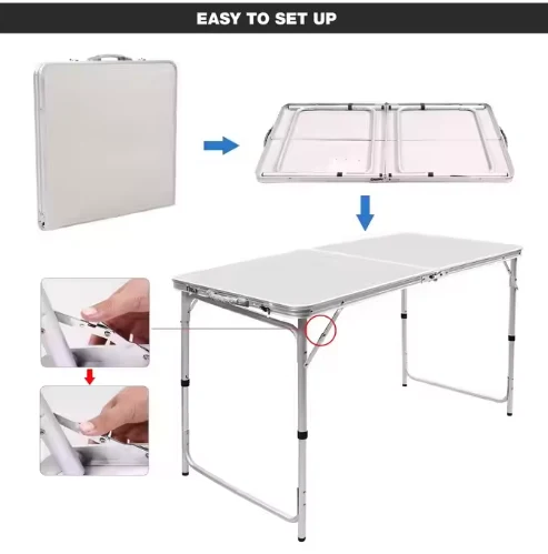 Դյուրակիր ծալովի ալյումինե սեղան, ունի բազմաֆունկցիոնալ օգտագործումներ, ինչպես ներսի, այնպես էլ բացօթյա, ներառյալ պիկնիկի սեղան, լողափ սեղան եւ ճամբարային խոհանոցի սեղան, որոնք օգտագործվում են ճամբարային, լողափ, զբոսաշրջություն, սպորտային միջոցառումներ, դրսում եւ ձկնորսություն: