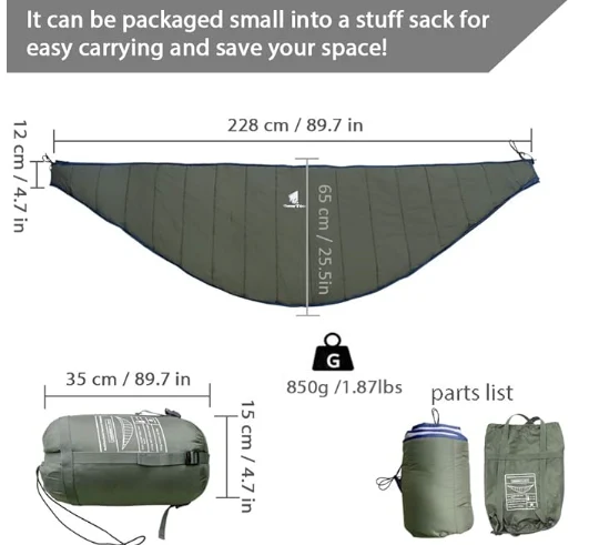 Այս Hammock Quilt- ը կարող է վերածվել կոմպակտ չափի `մեջքի պայուսակների համար, հիանալի է ճամբարային, արշավ, ճանապարհորդություն